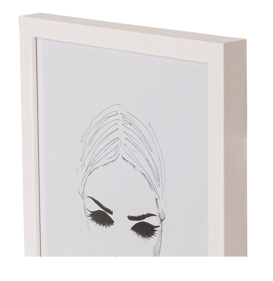 Bílý a dřevený obrouček s klasickým stylem. Obrouček má tenký profil. Rámeček se dodává se skutečným sklem, které na fotografiích zvýrazní to nejlepší. Se stojánkem vzadu, který umožňuje umístit rámeček na polici nebo stůl. Profil rámečku má hloubku 22 mm a šířku 13.5 mm. Velikost obrázku v rámečku je 20x25 cm.