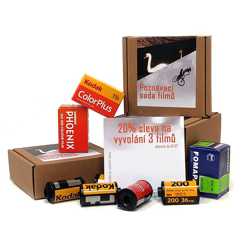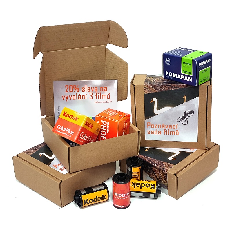 Poznávací set filmů je ideální dárek pro každého, kdo miluje analogovou fotografii nebo ji chce teprve objevit. V elegantní dárkové sadě najdete tři různé kinofilmy – černobílý Fomapan 400, barevný Kodak ColorPlus 200 a svěží Phoenix 200. Každý nabídne jinou atmosféru, barvy i charakter snímků. Součástí balení je navíc poukaz na vyvolání filmů se slevou 20 %, takže si můžete své první snímky rovnou nechat zpracovat. Tento set přináší inspiraci k tvoření, objevování i radost z analogové fotografie – darujte zážitek, který zůstane ve vzpomínkách.