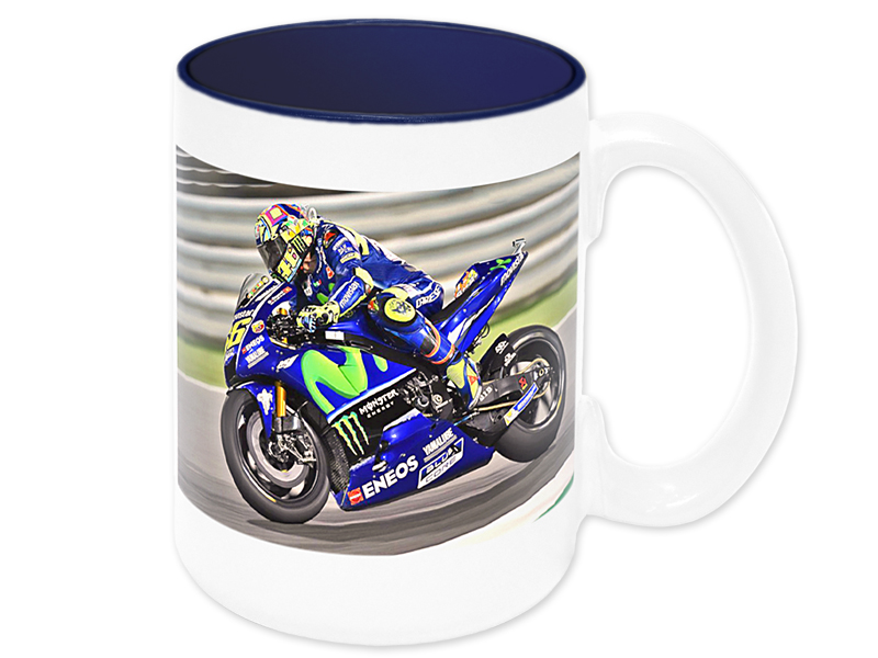 Větší bílý fotohrnek MAX s tmavě modrým vnitřkem a uchem – klid a elegance v každém doušku